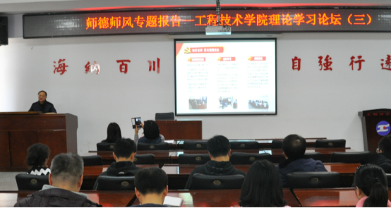 11月21日下午,工程技术学院师德师风专题报告暨理论学习论坛(三)在工程楼915会议室举办。