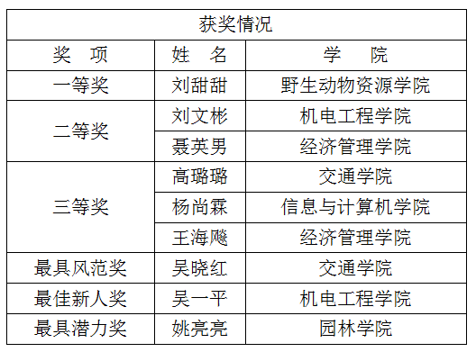 大赛邀请哈尔滨师范大学就业指导处处长张旭东、黑龙江科技大学招生就业处副处长高志刚、东北林业大学教务处副处长姜中珠、东北林业大学文法学院教授李爱琴、哈尔滨工业大学讲师尹胜君、黑龙江大学招生就业处讲师赵丽明、2017年东北林业大学青年教师授课大赛一等奖获得者工程技术学院高珊担任评委,东北林业大学招生就业指导处处长赵立杰现场观摩了比赛。