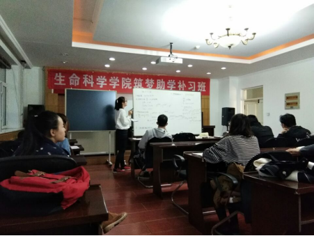为进一步加强学院学风建设,营造良好学习氛围,针对学业有困难学生,生命科学学院创办“筑梦助学补习班”,对挂科人数较多课程开设大学生一对多补习班。