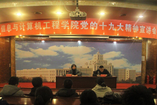 12月15日,信息学院在动资楼331国际会议厅举办党的十九大精神专题报告会,此次报告会特邀我校理论政策宣讲团成员、马克思主义学院思想政治教育学科硕士生导师李忠艳教授作题为“我眼中的十九大”主题报告。本次报告吸引学院全体学生党员、学生干部近270人到场聆听。