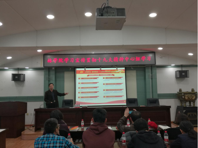 党委书记迟德富以“不忘初心,继续前进——认真学习贯彻党的十九大精神”为主题,做了一次全面、生动的学习辅导。迟德富强调,全体党员干部要结合学院特色工作,深入学习领会十九大精神,将学习成果转化为工作动力,落实到学院各项实践工作中去。