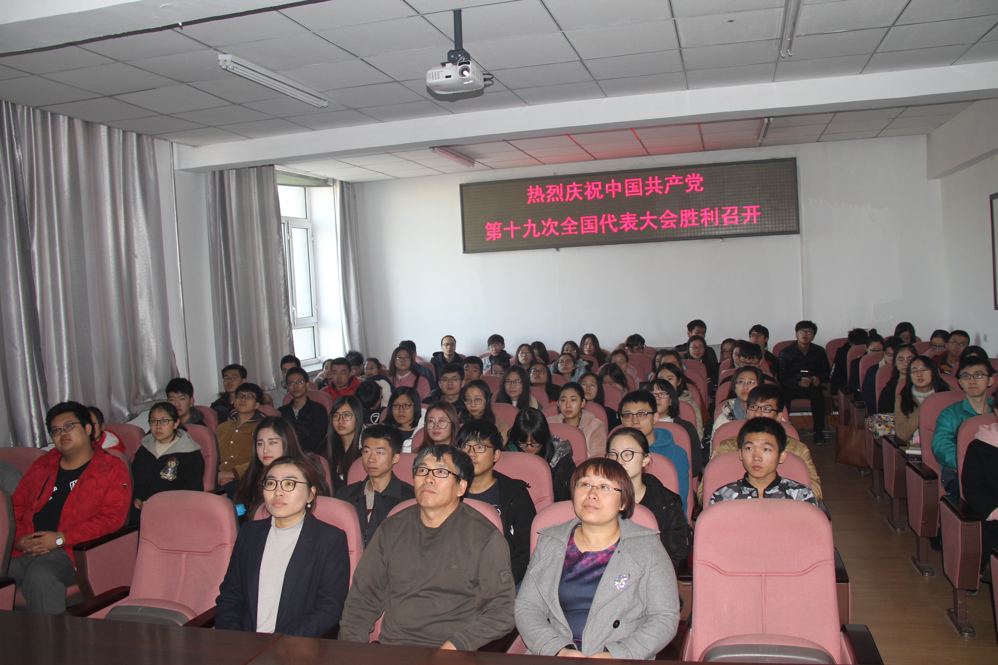 中国共产党第十九次全国代表大会10月18日在北京人民大会堂隆重开幕。为及时收看党的十九大开幕会,把党中央的声音传达到全院广大师生,理学院党委组织教师代表、研究生代表、本科生代表在理学院会议室集中观看十九大开幕会现场直播。