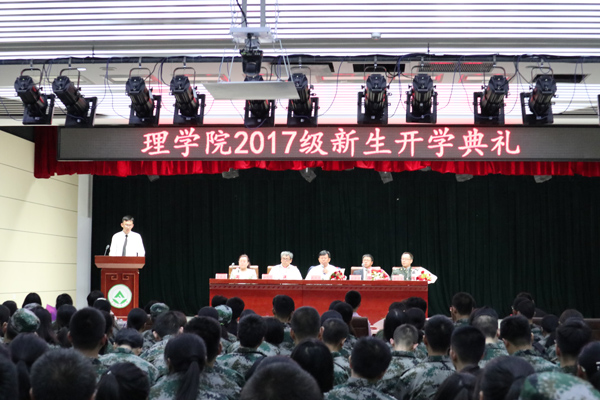 在这秋高气爽,丹桂飘香的金秋时节,9月10日下午2时许,东北林业大学理学院2017级新生开学典礼暨军训动员大会在颐丰园405报告厅如期召开。理学院院长戚大伟,党委书记侯彦杰,党委副书记、副院长潘忠文,副院长徐文科,副院长陈春霞,数学系主任张春蕊,数学系副主任、数学与应用数学专业负责人臧睿,物理系主任崔金刚,化学化工系主任王霆,化学专业负责人王丽丽,理学院团委书记、2014级思想政治辅导员宋文忠,理学院学生会秘书长、2016级思想政治辅导员孙燕,2015级思想政治辅导员孙浩波,理学院党委秘书、2017级思想政治辅导员裴洋出席大会,2017级全体新生参加本次大会。大会由党委副书记、副院长潘忠文主持。