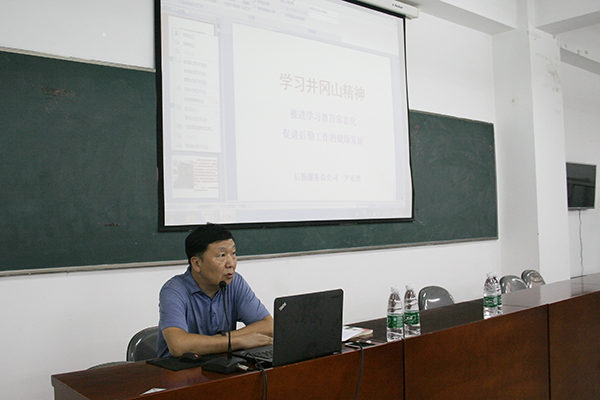 7月19日下午1时40分,后勤服务总公司党总支在俭德园五楼会议室举办专题党课教育活动。党总支书记尹承增为全体党员做了题为《学习井冈山精神——推进学习教育常态化促进后勤事业健康发展》的培训讲座。