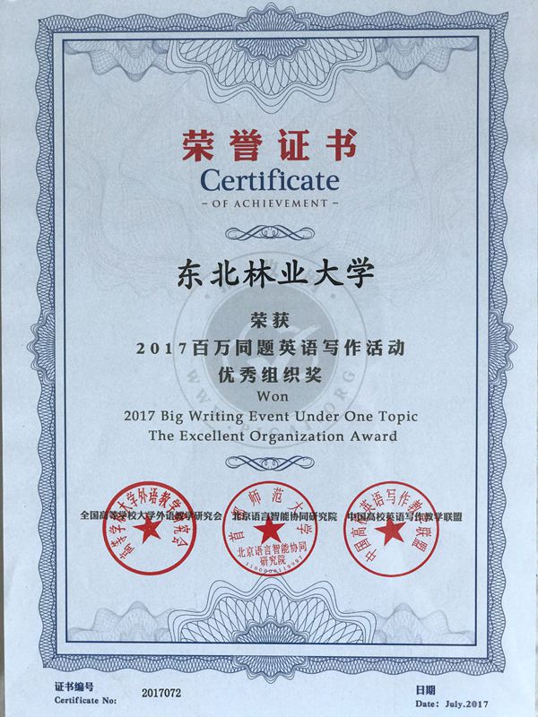 本次总决赛同为2017年百万同题英文写作活动的大学组全国决赛。来自全国各地区的86名大学生从近130万初赛选手中脱颖而出,在首都师范大学进行了最终决赛。我校英语专业2014级学生王庚楠同学表现出色,获得特等奖,张鸣瑾老师获得优秀指导教师奖,我校获得优秀组织奖。