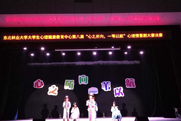 由东北林业大学党委学生工作部、大学生心理健康中心主办,各院级心理健康教育中心协办的“心”之所向,一苇以航——东北林业大学第八届心理情景剧大赛的决赛于6月18日晚六点在科学会堂举行,信息与计算机学院研究生辅导员李婧坤老师、生命科学学院辅导员李晨老师、野生动物资源学院辅导员陈洪老师以及东北林业大学大学生心理健康教育中心指导老师钱淑红老师出席比赛,600余名同学通过微信抢票方式入场观看比赛。此外,本次比赛通过微博直播的形式向场外观众直播,最高在线人数达2000人。
