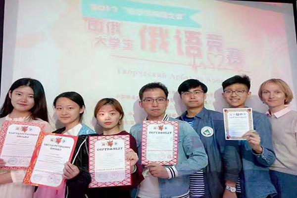 5月21日至5月24日,“哈尔滨之春”中俄大学生俄语竞赛在哈尔滨理工大学举行。此次大赛由中俄两国共同举办,是“俄语无国界”活动的一部分。我校外国语学院俄语系14级高硕同学和15级闫玮佳、史鸽、张晓茜、王喆同学在外教叶青老师的带领下参加了此次竞赛。我校代表队共参加了诗朗诵、歌曲、舞蹈、话剧四个项目的比赛,通过激烈的角逐,我校取得了歌曲三等奖、话剧二等奖的优异成绩。我校代表队的表现得到了评委们的好评。黑龙江大学俄语学院教授、普希金奖章获得者邓军老师对我校代表队的表现给予了高度评价。通过这次比赛,选手们开阔了眼界,得到了有效的锻炼,对他们今后的俄语学习提供了经验和参考。比赛期间,在与其他学校同学交流的过程中,增进了彼此之间的友谊,了解到了自身学习上的不足。本次比赛得到了系里的大力支持和高度重视,外教叶青老师带领同学们在比赛前认真准备,多次排练,才取得了优异的成绩。希望以后能多参加这样的比赛,为俄语系同学提供更多锻炼的机会。(文/王喆,图/雷忠臣)