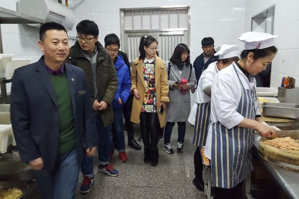 下午3时来自校学生会的19名学生代表在饮食服务中心主任苗国民,党支部书记梁敏姝和副主任乔广明的带领下,与食堂餐饮服务零距离接触,依次参观了食堂的库房、主副食班组、米饭生产间、食品检验室、豆浆加工间和豆芽生产间。学生代表对饮食服务中心严格的进货管理、整洁的后厨和先进的食品生产加工过程有了全新的认识和更深刻的了解,他们纷纷表示在这样的食堂用餐很放心、很温馨。因为这不仅有家的感觉,还有安全的保障,今后一定会积极配合好饮食服务中心的工作,更多的宣传饮食服务中心为食品安全所做出的努力工作。