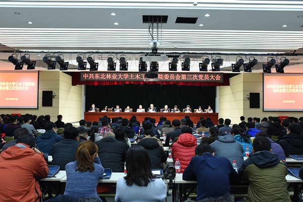 春回大地、万物复苏。在学校党委的亲切关怀与精心指导下,经过紧张有序的筹备,3月15日下午,中共东北林业大学土木工程学院委员会第三次党员大会在南校区颐丰园四楼主报告厅隆重举行。学院二百多名师生党员参加大会,民主党派和无党派人士教师代表四人列席大会。会议由土木工程学院党委副书记、副院长王晓光同志主持。