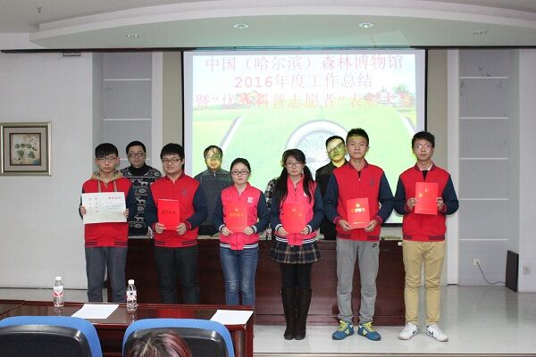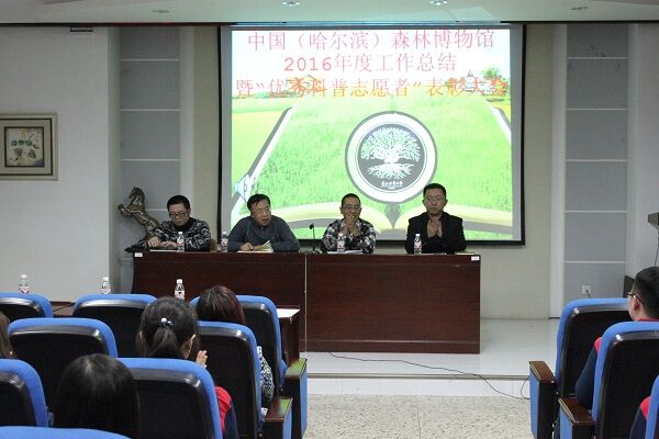 12月21日下午4时,中国(哈尔滨)森林博物馆志愿者团队2016年度工作总结暨“优秀科普志愿者”表彰大会在文博楼1019室隆重举行。党委学工部(学生处)勤工助学中心主任郑克骞、校团委社会实践部负责人袁野、博物馆馆长张光贤、副馆长李健伟以及博物馆全体工作人员受邀出席了本次表彰大会。