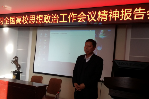 12月14日下午1:30分,外国语学院在文博楼1019会议室召开了《全国高校思想政治工作会议精神报告会》,会议的主题是学习贯彻落实全国高校思想政治工作会议精神和习近平总书记在会议上的重要讲话。学院领导及全体教工参加了本次报告会,会议由学院党委书记杨滨章同志主讲。