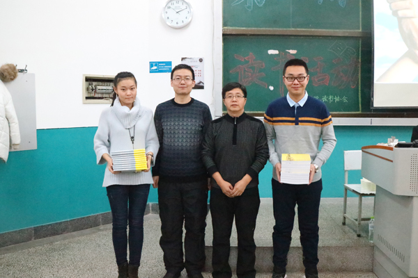 会议伊始,理学院党委书记侯彦杰上台致开幕词。他鼓励大家要养成坚持读纸质书的习惯,团干部要结合本次读书活动将“团队合作”“内化于心,外化于行”。随后的赠书仪式,理学院党委书记侯彦杰和理学院团委书记宋文忠共同为学生代表赠书。接着,现场进入轻松的游戏环节,同学们踊跃参与,气氛热烈。最后,同学们以“无领导小组会议”的方式就本次的读书主题进行了深入的研讨。