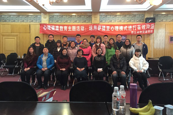 11月28日下午1点30分,野生动物资源学院在动资楼333室成功举办了心理健康教育主题活动:运用萨提亚模式进行有效沟通。本次活动主讲人是文法学院的心理学教授田淑梅老师。参加本次活动的嘉宾有学院党委书记肖向红老师,副院长郑冬老师,党委副书记、副院长玄凌老师,研究生辅导员王金震老师和于兵老师。此外我院2015级、2016级部分研究生也参与了此次活动。