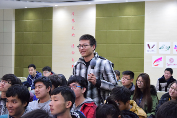 助飞环节,两位嘉宾耐心诚恳地解答了在场同学的提问。李永成说:“创业有许多方面,任何灵感都可能成为创业的切入口,无论学习何种专业,好的想法都十分重要”。面对在场观众对于如何锻炼自己的疑惑,马俊龙分析道,“在学团工作中可以学习与人相处的方法、锻炼办事能力,在实践时要理性分析,尽量选择与专业相关的岗位。”
