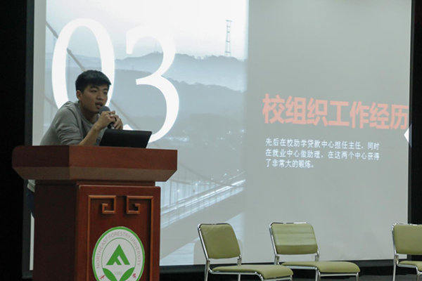 随后,马俊龙同学以学团工作经验为主线,分享了自己大学期间创业的心路历程。马俊龙同学首先谈到其大学时期的规划,即:一方面寻找创业的契机,另一方面通过学团工作锻炼能力,为创业打好基础。他建议大家,在大学期间加入适合自己的组织机构,无论创业、求职或考研,学团工作经验都将是不可多得的财富。马俊龙同学结合自己担任老师助理的经历总结到,“如何在陌生人面前通过有效的沟通来展现自己,是大学期间需要锻炼的技能或者思考的问题。”最后,马俊龙同学告诫大家:“大学是把温室里的大学生移向野外的一个过程,改变始终是痛苦的,痛苦的同时也在茁壮成长着,只要坚持,总会学有所成!”