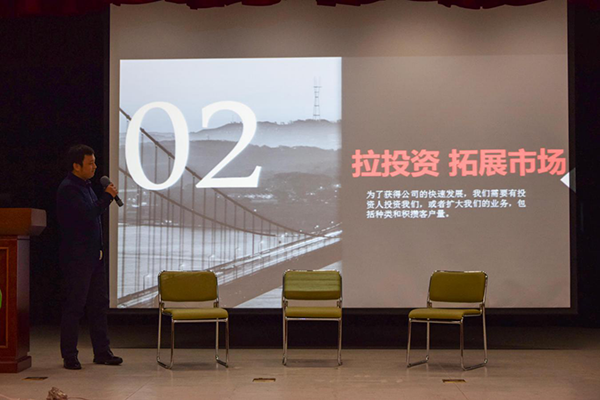 筑梦环节,两位同学依次讲述了自己的创业之路。李永成以创业公司发展为背景,详细地介绍了他的创业历程。他说:“专业老师的项目产品开发给了我启发,在初步对产业前景进行预估后,我决定将产品推向市场。”接着,他回忆了推广初期的情形,他们带着养殖户狐狸出现炎症的问题,经过反复实地研究,采取了配备工具、改良药物成分、改进无菌操作控制等一系列措施,终于顺利解决问题。经过与在场同学的深入分析,最终得出结论——“生产每一过程的标准化是产品质量的保证”。演讲最后,他总结道,“创业路上总是充满了风险和挑战,但是要勇敢相信自己,永不轻言放弃,前方总有希望在等待!”
