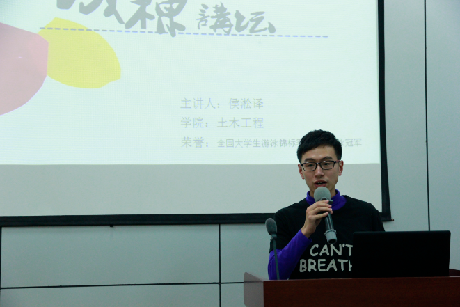 “坛”中窥探成功哲学,携手梦想助你“成栋”。11月3日晚六时,我校游泳队优秀队员陈思远、王玉涛、侯淞译等3位同学做客第三十期《成栋讲坛》,在颐丰园学生活动中心与在场同学分享了他们在通向王者之路上的艰辛与收获。
