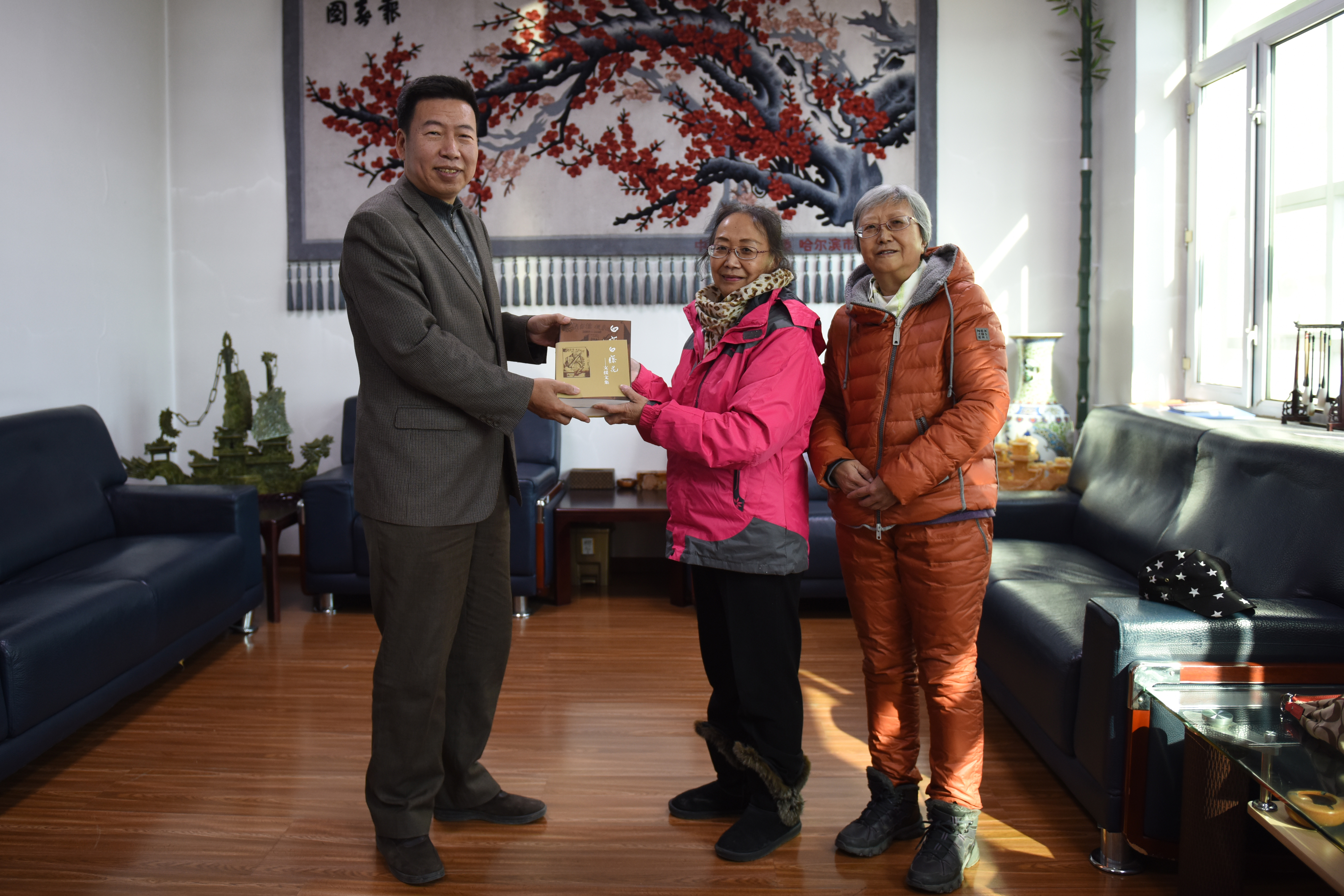 11月1日上午,黑龙江省五名抗日战争老作家之一——支援同志的两名女儿来到我校,将175万字的《白藤花——支援文集》(上、下册)赠与学校。图书馆馆长王立海、党总支书记李学益,党委宣传部副部长李洪峰在图书馆会议室接收了文集,并为支雁、支鹰二位捐赠者颁发了图书捐赠荣誉证书。