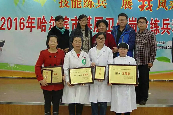 由哈尔滨市卫生和计划生育委员会、哈尔滨市精神文明建设指导委员会办公室、哈尔滨市总工会、共青团哈尔滨市委员会、哈尔滨市妇女联合会联合承办的“哈尔滨市基层卫生岗位练兵和技能竞赛”于10月22-23日在哈尔滨市疾病控制中心举办,校医院医生石越、菅丽萍和护士许晶代表香坊区卫计委参赛,经过初赛、复赛激烈角逐,闯进总决赛,喜获佳绩。由医生石越、菅丽萍和护士许晶组成的林大社区卫生服务站家庭医生服务团队最终获得“2016年度全市基层卫生岗位练兵和技能竞赛”团体三等奖;医生菅丽萍喜获“2016年度全市基层卫生岗位练兵和技能竞赛”全科医生城市组第二名,并荣获“哈尔滨市基层卫生技能标兵”荣誉称号。
