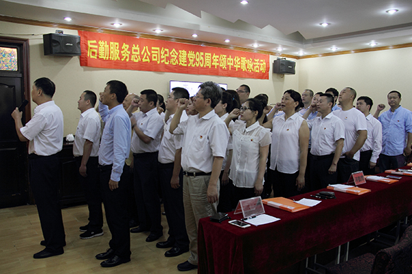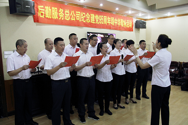 7月1日上午8点30分,后勤服务总公司纪念建党95周年颂中华歌咏活动在饮食中心四楼举行。活动由饮食中心党支部书记梁敏姝主持,后勤服务总公司全体党员和部分入党积极分子参加了活动。