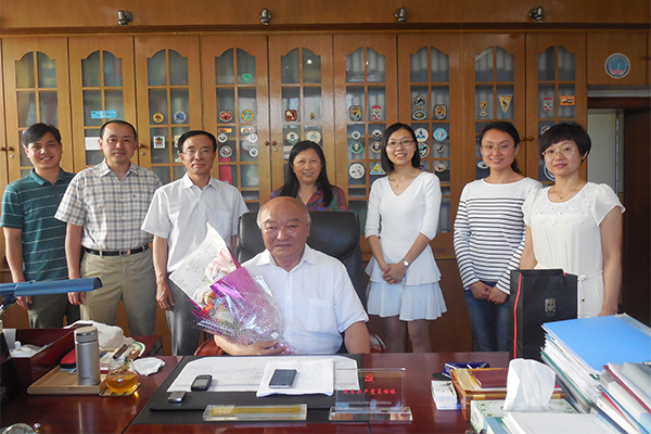 野生动物资源学院近期深入开展“两学一做”系列学习教育活动,继续学习党章和习近平总书记重要讲话精神,学习老党员先进事迹,践行合格共产党员标准。今年,在建党95周年之际,恰逢野生动物资源学院名誉院长、中国科学院院士马建章先生入党六十周年,为此,学院党委委员和马院士所在教工第一党支部的部分同志,于6月28日看望了正在办公室忙碌的马建章院士,送去了全院师生对他的祝福,同时学院党委授予马院士“优秀共产党员楷模”纪念奖杯。