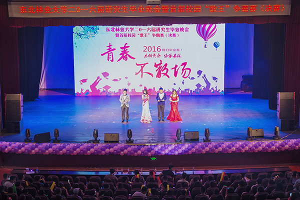 为营造毕业生离校良好氛围,开展丰富多彩的爱校荣校教育,6月20日晚,由我校研究生院(党委研工部)主办的2016届研究生“乐动青春﹒依依东林”毕业晚会暨首届校园“歌王”争霸赛(决赛)在科学会堂举行,校领导蔺海波副书记,部分学院党委书记、各学院研究生辅导员、研究生院(党委研工部)全体老师及1300余名观众一同观看晚会。
