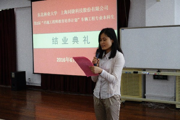6月3日,东北林业大学与上海同捷科技股份有限公司第二届“卓越工程师教育培养计划”2012级车辆工程专业本科生结业典礼在上海同捷公司总部举行。
