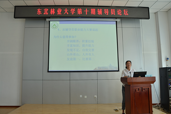 之后,由参加2016年黑龙江省和东北赛区辅导员职业能力大赛并取得优异成绩的林学院团委书记杨冰雨,为大家讲述她对辅导员职业能力大赛的理解和自己参赛的亲身感悟,激励广大辅导员要逆水行舟,勇于挑战自我,注重日常的工作积累,做到学高为师,身正为范,真正成为大学生的人生导师。
