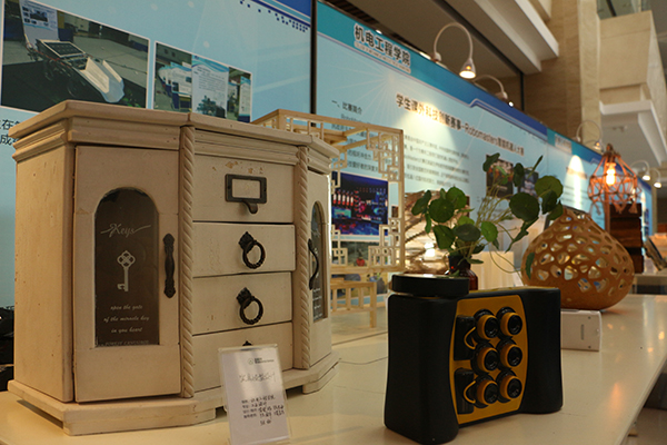 除了这场精彩的智能车赛,我院还在成栋一楼大厅、6楼和8楼设置了相关展会,内容包括工业设计专业部分学生优秀作品及创新实验部分成果,各展会将在工业设计周期间向广大师生开放。今天是作品展出的第一天,充满设计感的作品就吸引了大批师生驻足观赏,场面热闹非凡。