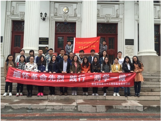 为全面落实 “两学一做”学习教育,5月15日上午10时,信息学院党校组织第33期预备党员培训班和第12期入党积极分子培训班全体学员参观了东北烈士纪念馆。学院党委副书记王冰和培训班班主任张音一同前往参观。