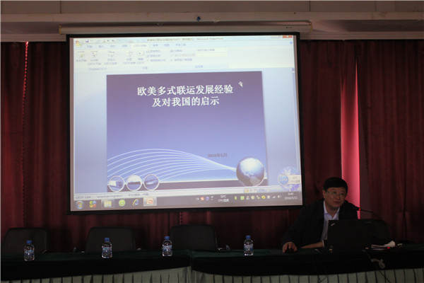 王力强副局长以“欧美多式联运发展经验及对我国的启示”为题,从多式联运的概念入手,通过对比中国及欧美国家对多式联运的不同定义,着重讲解了欧美国家的多式联运的发展经验。他指出,欧美国家采取了强有力的引导政策,实现了标准化管理。在运输形式上丰富多样,以铁水运输为主导,空陆联运发展势头迅猛,公水联运,内河应用广泛,实现了基于标准单元全程无隙运输。针对我国多式联运发展现状,提出了我国交通运输业的发展方向,即建设统一开放的综合运输市场,从单一运输方式过渡到多式联运,从基础设施建设发展到运输服务转型,并提出发展交通运输业的重点在于健全综合运输标准体系,核心在于健全治理体系,关键则在于政策推动和引导发展。朱煜同学以分享作为台湾交换生的经历为题,着重介绍了台湾义守大学交通运输专业的课程设置、先进的教学模式和教学理念,并鼓励现场同学们积极参与交换生项目,丰富阅历。