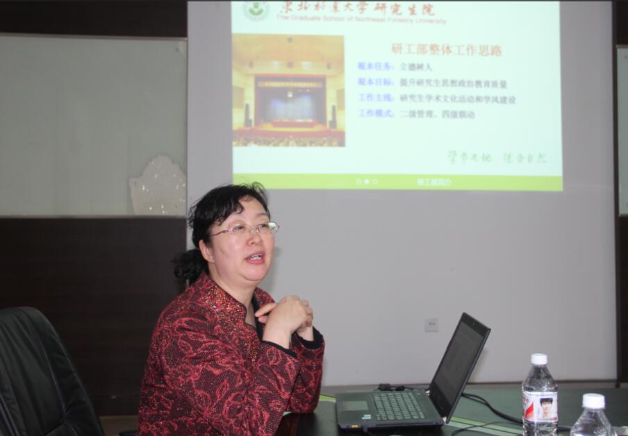 学校党委研究生工作部部长马玲作《整体构建工作体系、促进研究生全面发展》的主题报告