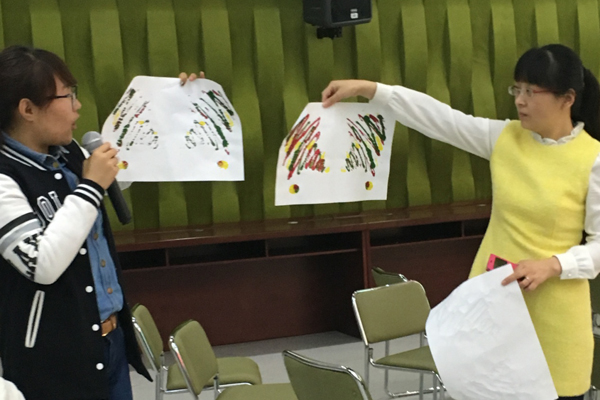 故事分享环节过后,教师和同学们以书会友,互相分享自己的看法和工作感悟,在进入“我的墨迹故事”环节中,大家分成三组,围成三个圈坐好,按照活动规则开始进行活动。老师和同学们开始充分发挥想象力,画出属于自己心中的蓝图,分享一个又一个精彩的故事给大家听。