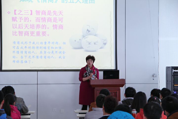 为了帮助我院学生正确认识情商,进一步了解情商的重要作用,3月23日13时45分,我院邀请情商研究专家、哈尔滨工程大学董宇艳教授在大学生活动中心进行了以“大学生成才的神秘通道—漫谈情商”为题的工作坊。董宇艳教授从事高等教育教学管理近30年,她的课程《情商与智慧人生》荣获中国高等教育学会“大学素质教育精品通选课”。