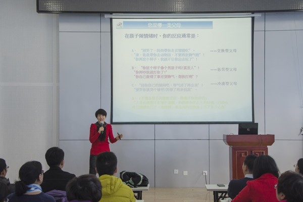 在“三八”妇女节来临之际,为帮助我校广大青年教职员工解决其育儿烦恼,大学生心理健康教育中心于3月11日下午,特邀文法学院平爱红老师在我校大学生活动中心,为广大教职员工分享了亲子沟通的先进理念和科学方法。本次工作坊共有50余位教师参加,大学生心理健康教育中心钱淑红老师主持。