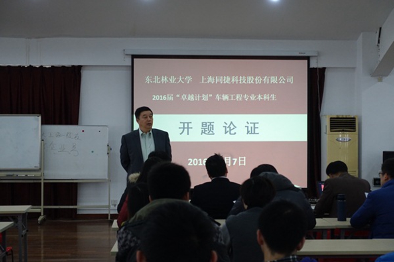 2016年1月7日东北林业大学车辆工程专业在上海同捷实习基地召开了首届3+1联合培养学生开题论证会及迎新年晚会,会议由交通学院院长储江伟教授主持。