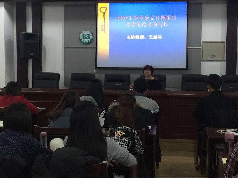 王越芬教授采取正反两方面例子对照的方式,深入阐释了硕士研究生论文开题应遵循的原则,全面介绍了学位论文开题报告的基本内容,对如何完成一篇“时髦”的研究生学位论文进行了有针对性的指引。近两个小时的讲座结束后,王越芬教授回答了现场同学关于参考文献格式、学术论文发表、提前毕业要求等方面的提问。同学们纷纷表示,这次讲座选题务实、内容具体、学术水准很高,特别是王老师聚焦一年级硕士最关注的焦点和热点问题,理清了学位论文开题和写作的头绪,澄清了大家以往的一些片面认识,宏观上讲清了思路,微观上提供了抓手,对于当前和今后的学习与科研进程具有极强的指导性,听后受益匪浅。
