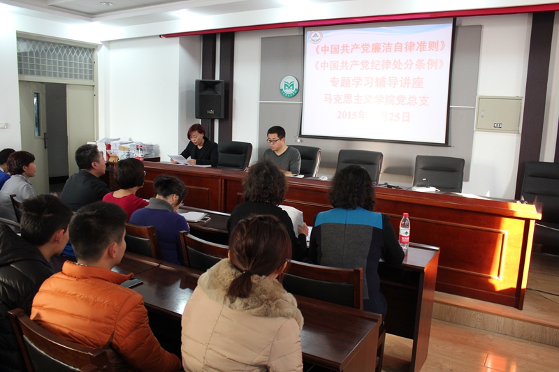 11月25日下午1:30分,马克思主义学院在文博楼921学术报告厅召开党员组织生活会,深入学习贯彻《中国共产党廉洁自律准则》(以下简称《准则》)和《中国共产党纪律处分条例》(以下简称《条例》)。会议由马克思主义学院总支书记魏晓慧主持,马克思主义学院全体师生党员及入党积极份子参加了会议。