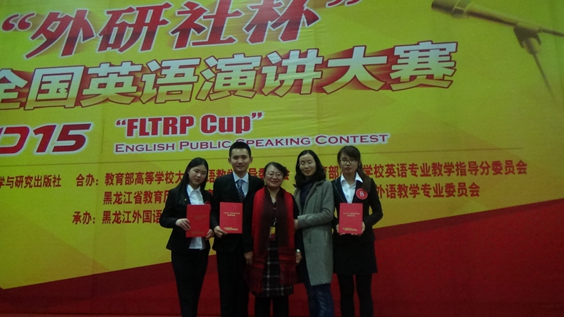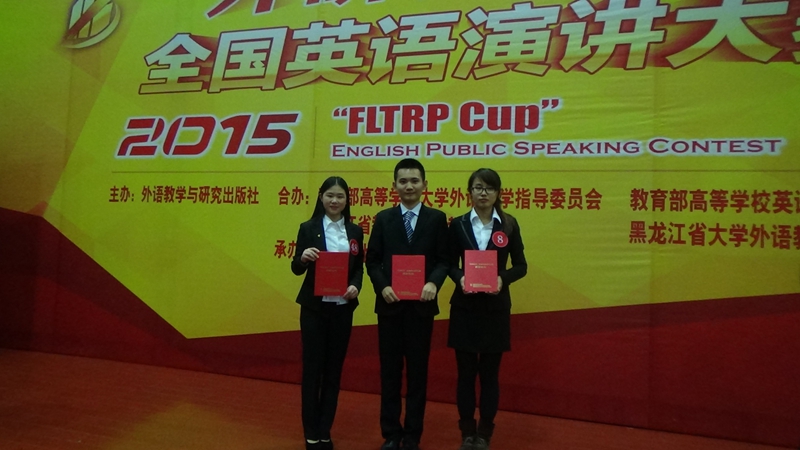 2015年10月31日,2015“外研社杯”全国英语演讲大赛黑龙江省复赛在黑龙江外国语学院隆重举行,我校共派出3名选手参加此次比赛。经过为期一天的激烈的角逐,外国语学院2013级英语专业孙稼宝同学获得英语演讲大赛一等奖;2013级英语专业刘洋同学和2014级农林经济管理专业张慧娴同学双双获得二等奖。