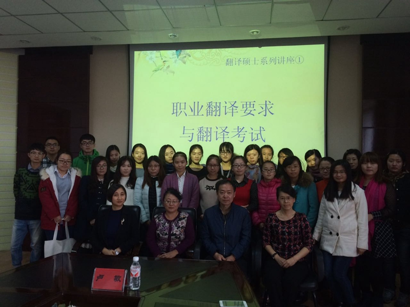 卢敏主任于1989年4月至2003年10月任中央编译局文献部英文处副处长;期间曾于1990年9月至1991年9月赴美国马萨诸塞州立大学做访问学者。2003年至今任中国外文局翻译专业资格考评中心副主任。现任中国翻译协会理事,全国翻译专业资格(水平)考试英语专家委员会委员,全国翻译系列高级评审委员会委员。卢敏主任先后多次参加全国人大、全国政协、中国共产党全国代表大会及国际会议重要文件的英文翻译和审定稿,曾参加《周恩来选集》、《陈云选集》、《刘少奇选集》、《邓小平选集》9第一、二、三卷)、《中国共产党七十年》、《我的父亲-邓小平》9上卷)等英文文献的翻译与审定工作。此外,卢主任还主编了CATTI考试用书等若干册。在此次讲座中卢主任从自身多年的教育理念以及丰富的实践经验入手向同学们介绍了翻译实践中应该遵循的原则以及应该注意的问题,期间卢主任说道“翻译可以成就年轻人的梦想”,鼓励同学们努力成为高端的翻译者。随后卢主任详细分析了翻译考试中学生常见的问题以及应该注意的事项,让在场的同学们受益匪浅。讲座的最后卢主任向同学们推荐了一些翻译考试复习过程中高效、简洁的参考书籍,为同学们今后的学习指明了一条光明的道路。本次讲座持续了近两个半小时,期间多次赢得了在场所有观众的热烈掌声,讲座的最后,卢主任与听众进行了互动,详细地回答了大家提出的问题。