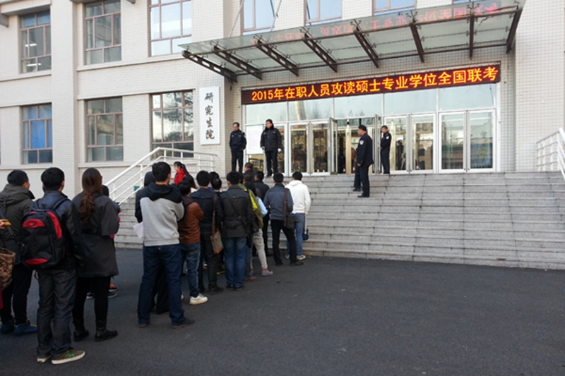 2015年在职攻读硕士学位全国联考统一考试得到了各级领导的高度重视。考前,教育部考试中心考试处副处长李恒金亲临我校视察考点整体情况。考试期间,学校副校长李斌受杨传平校长委托亲临现场,全程指挥、巡视各项考务工作。国务院学位办研究生培养处舒尊鹏、黑龙江省招生考试委员会办公室巡视员、省招办机关党委副书记富美兰、研究生招生处马丽君巡视员、刘佳巡视员来我校,进行考务督导及巡视。各巡视员对我校考试考务工作给予充分肯定和高度评价,称赞我校考点考风优良,秩序井然。