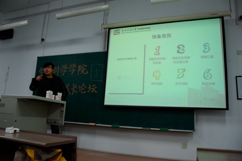 随后李哲学长给大家带来如何向党组织靠拢的讲座,主要分为两个部分:一方面是大学入党的一般流程,另一方面是学术科研领域的介绍。学长用他精心制作的PPT向同学们详细的介绍了入党的流程。此后在座谈环节,学长耐心地对同学提出的关于入党问题进行了解答。最后李哲学长提出了五点建议:一、确立目标,二、培养兴趣,三、锻炼能力,四、丰富头脑,五、抵制诱惑。此外两位学长在座谈中还向我们介绍了我院保研政策,并亲切地和同学们进行互动,认真解答同学们提出的问题,现场气氛十分热烈。