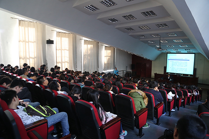 下午2时,讲座正式开始。首先,政治学与行政学专业负责人南丽军教授对周教授和专业老师以及同学们的到来表示欢迎,并介绍了周光辉的相关情况。在一片掌声中,周教授从长治久安、法治中国、规范权力、实现条件四个关键词入手,进入了正题。讲座中,周教授首先提出法治中国的核心在于权威的制度化,要从战略上把握中国的发展,并由此引出了十八届四中全会的里程碑意义,即明确树立了宪法权威、明确了当的领导与法制的关系以及明确了法制与改革的关系。其次,周教授讲述了法治中国提出的背景,不仅从历史背景角度解释了人存政存,人亡政息的原因,启示国家要实现长治久安需要法治,而且从时代背景入手,指出目前的世情、国情、党情发生变化,中国崛起面对挑战等。接着,周教授用从如何理解依法治国,为什么要依法治国以及实现依法治国的基本条件三个方面深度剖析了从依法治国到法治中国的转变过程。最后得出我们要尊重法律,遵守法律,维护法律的结论。