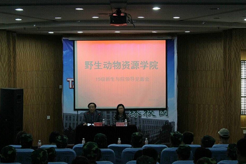 9月16日晚六点半,野生动物资源学院在图书馆学术报告厅召开了“2015级新生与院领导见面会”。野生动物资源学院领导班子全体成员以及各系主任参加了此次见面会。