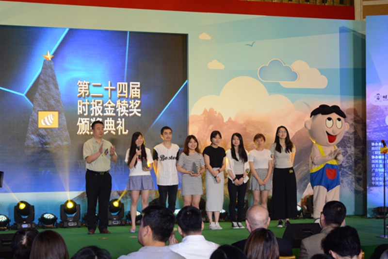 6月19日,由旺旺中时媒体集团、北京大学联合举办的全球华人大学生广告竞赛第24届广告金犊奖颁奖典礼在北京大学英杰交流中心举行,颁奖现场迎来了全国25所高校500名师生与来宾欢聚一堂。我校广告学专业学生获奖8件,其中铜犊奖1件,优秀奖7件。6月18日,在教务处和文法学院领导的大力支持下,获“犊”团队及指导教师赴北京领奖。