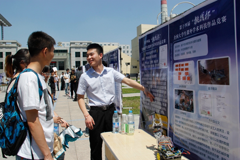 科技发明制作类作品决赛答辩于5月22日下午在研究生楼006进行,哈尔滨工业大学交通学院副教授王龙、航空航天热物理研究所副教授艾青,哈尔滨工程大学机电学院博士李松羽,我校科学技术研究院常务副院长李凤日、教务处处长翟雪峰等5位专家担任评委。《新型环保节能保温体系构造优化设计》等20件作品作者依次上台答辩,各位评委在逐一提问的同时也就作品质量的进一步提升分别给出了修改意见,各位专家还对《全自动蜂窝煤热水器》等13件作品进行了问辩。最终经过专家现场联评,确定了获奖名单。哲学社会科学类社会调查报告和学术论文、自然科学类学术论文分别通过专家函评的形式最终确定了获奖名单。