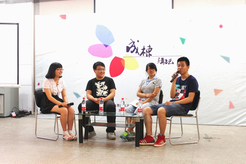 讲坛分别从“筑梦、逐梦、助飞、成栋”4个环节展开。筑梦环节,保入山东大学的孙婷婷同学从“保研经验”“感想收获”“毕业寄语”3个方面,将自己的保研历程向大家娓娓道来,她介绍了确定保研资格、联系学校导师、初试复试准备的保研步骤。在谈及“感想收获”时,她用青涩与懵懂、激情与活力、经历与成熟、收获与成长等4个阶段来描述自己的大学四年;保入哈尔滨工业大学的刘佳俊同学讲述了获奖经历,并告诉同学们在学有余力时要参加各种比赛,锻炼自己的能力,为以后打下坚实基础,他还介绍了在大连理工大学、哈尔滨工业大学夏令营的经历,帮助大家了解报名参加夏令营的注意事项,以及填写个人信息时的小技巧;保送至北京理工大学的齐权同学,告诫同学们要认清读研的目的,了解保研的流程,并鼓励大家要从点滴做起,勤学习、多实践、多比赛,学好英语,积极投入学生工作。
