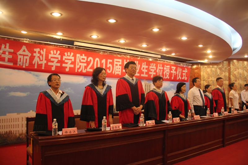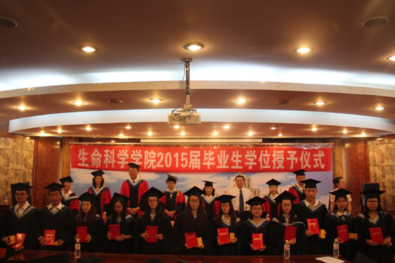 2015年6月18日,生命科学学院在动资楼331隆重举行2015届毕业生学位授予仪式,学院党政领导、教授委员会主任、部分学科带头人和专业负责人以及全体辅导员老师出席仪式。