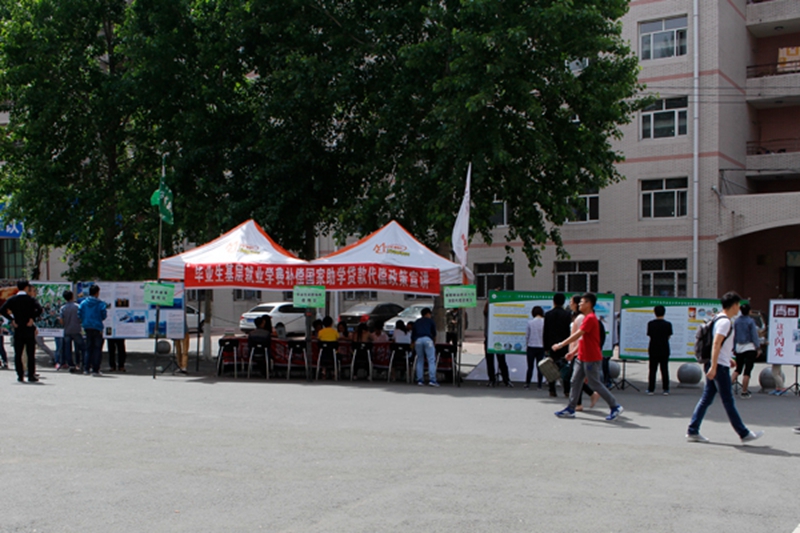 为进一步加强我校学生对学生资助政策的了解,鼓励大学生应征入伍,引导毕业生面向基层就业,学校于5月15日举办了2015年大学生应征入伍政策解读专场报告会,并于5月18日至29日在学校食堂门前举行了为期两周的学费代偿政策宣传活动。
