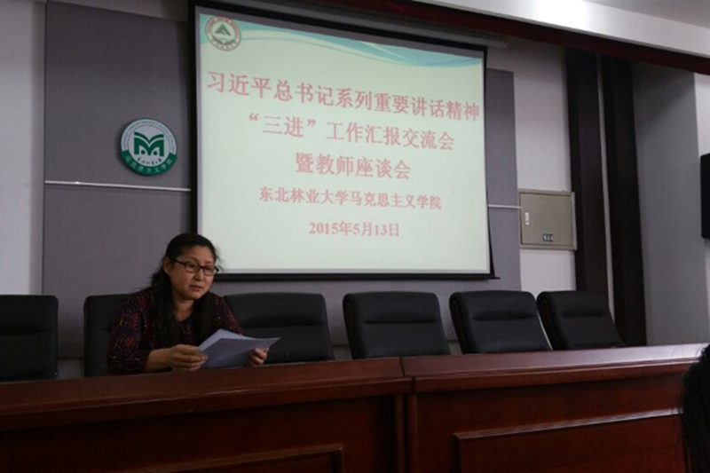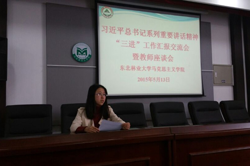 结合期中教学检查,2015年5月13日下午,马克思主义学院在文博楼921会议室成功举行了习近平总书记系列重要讲话精神“三进”工作汇报交流会暨教师座谈会。教务处、资产处工作人员及马院全体教师参加了会议。会议由马院副院长王越芬主持。